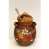 rozměr 17 cm s pokličkou, má otvor na dřevěnou lžičku na med